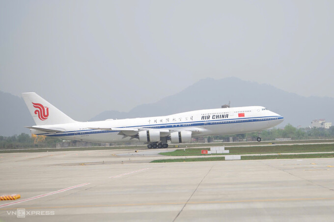 Chuyên cơ chở ông Tập Cận Bình đáp xuống sân bay Nội bài ngày 14/4. Ảnh: Trần Kiên