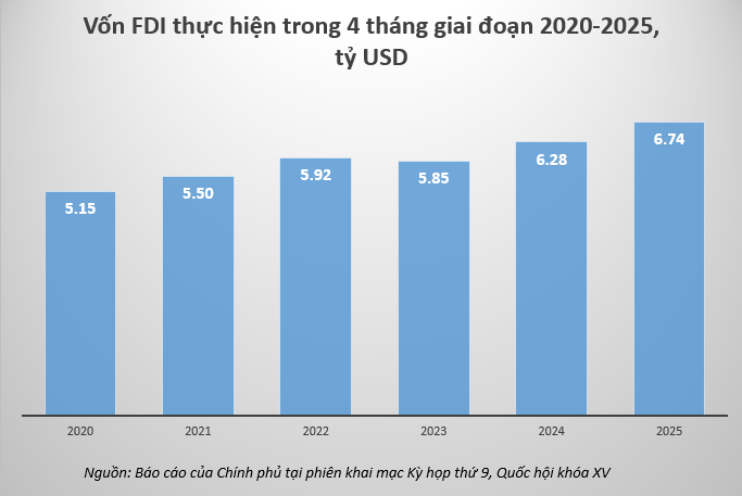 Hoạt động sản xuất kinh doanh nhiều lĩnh vực còn khó khăn, tiếp cận vốn tín dụng còn hạn chế; đầu tư tư nhân còn khó khăn, số doanh nghiệp ngừng hoạt động còn lớn. Chỉ số PMI ngành sản xuất Việt Nam tháng 4 chỉ đạt 45,6 điểm do tác động ngắn hạn của chính sách thuế quan đối ứng của Mỹ.