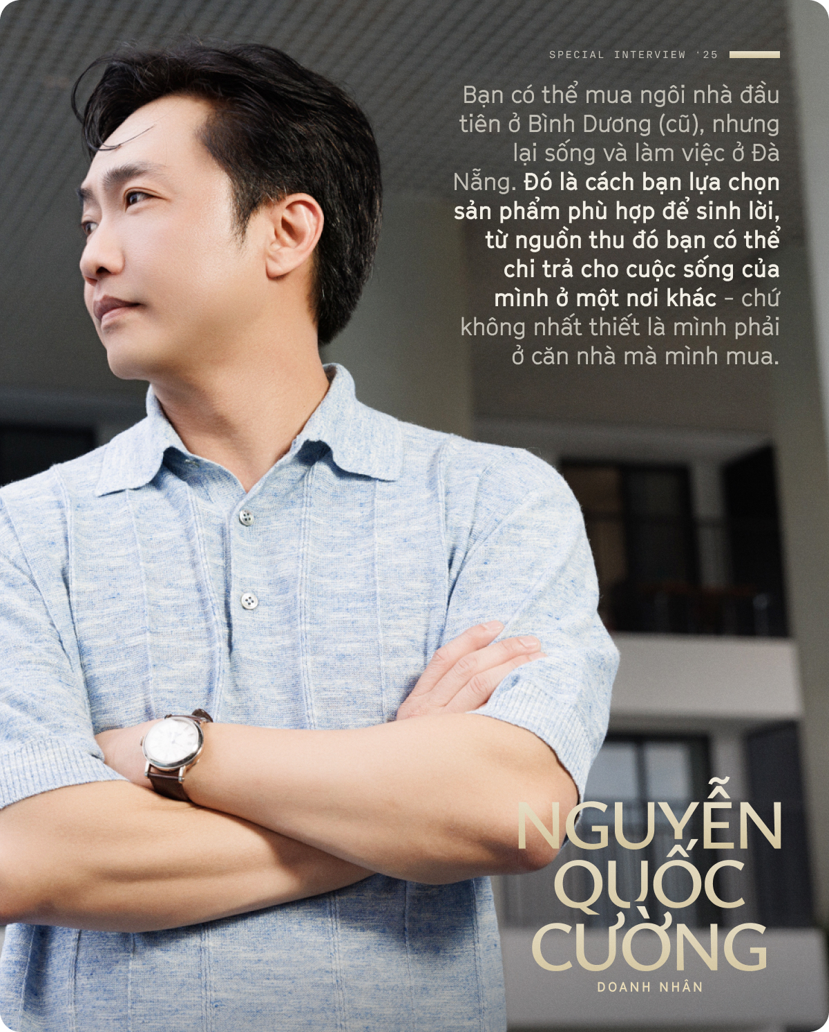 Nhưng một ngôi nhà có thể không chỉ để ở. Giá trị khai thác của ngôi nhà nằm ở nhiều cách. Bạn có thể mua ngôi nhà đầu tiên ở Bình Dương (cũ), nhưng lại sống và làm việc ở Đà Nẵng. Đó là cách bạn lựa chọn sản phẩm phù hợp để sinh lời, từ nguồn thu đó bạn có thể chi trả cho cuộc sống của mình ở một nơi khác - chứ không nhất thiết là mình phải ở căn nhà mà mình mua.
