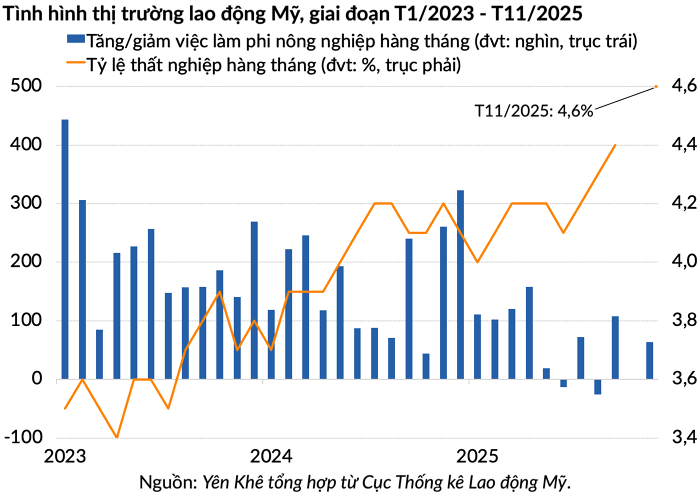 Thị trường lao động Mỹ cho thấy sức mạnh khi tạo ra 64.000 việc làm mới trong tháng 11. Tuy nhiên, dấu hiệu đáng lo cũng xuất hiện khi tỷ lệ thất nghiệp tiếp tục tăng.
