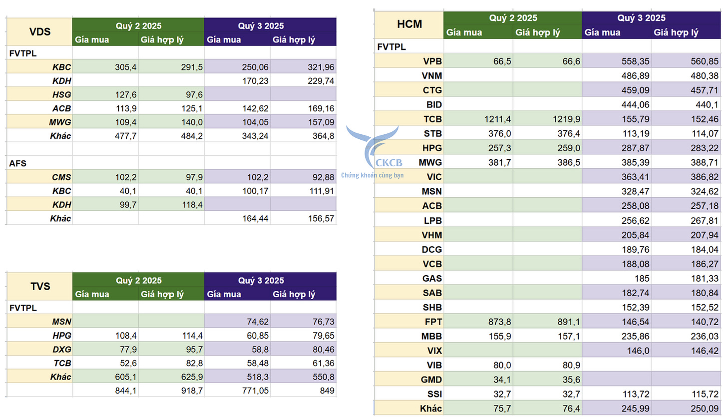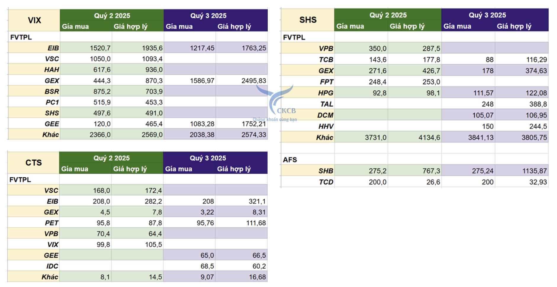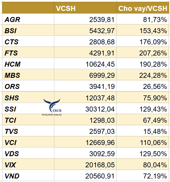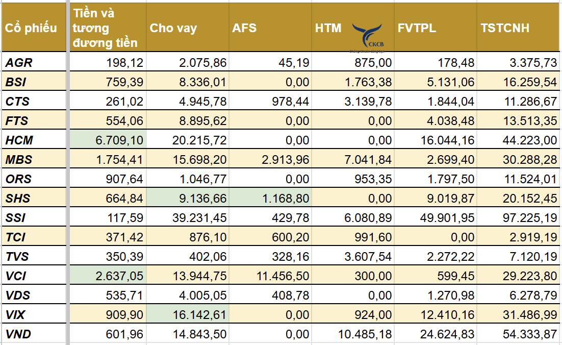 - SHS thì tăng khoản cho vay và tự doanh AFS; lần lượt tăng 1050,83% và 550,20%
