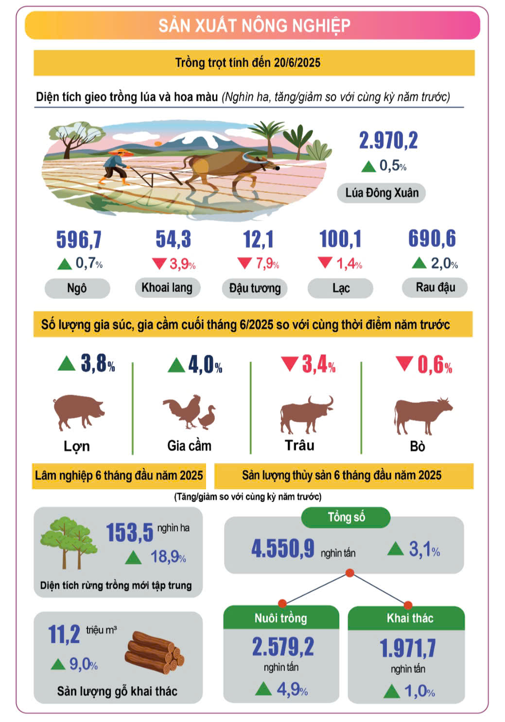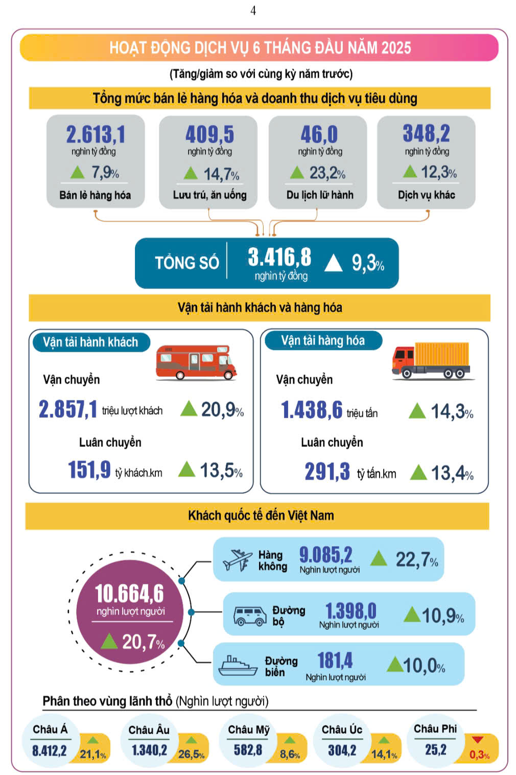 - Du lịch phục hồi mạnh: Khách quốc tế 6 tháng đạt 10,7 triệu lượt, tăng 20,7% . Doanh thu du lịch đạt 7,62 tỷ USD, tăng 24,7% .