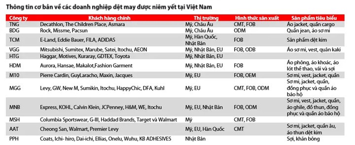 Vải may chiếm 70% chi phí nguyên vật liệu sản xuất và phần lớn tới từ nhập khẩu , về năng lực dệt, nhuộm nội địa còn kém phát triển do hạn chế về chi phí vốn đầu tư cao và cạnh tranh từ các nhà cung cấp lớn trong khu vực như Trung Quốc, Hàn Quốc.