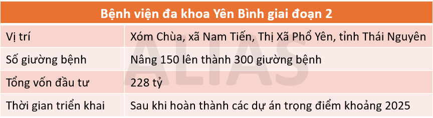 Đối với bệnh viện đa khoa Yên Bình thì TNH cũng đã lên kế hoạch mở rộng, nâng từ 150 giường bệnh lên thành 300 giường bệnh, nhưng do hiên nay bệnh viện đa khoa Yên Bình vẫn đủ công suất để đáp ứng nhu cầu khách hàng, cho nên TNH đã lùi thời gian triển khai mở rộng biện này sau khi hoàn thành xây dựng các bệnh viện trọng điểm khác.