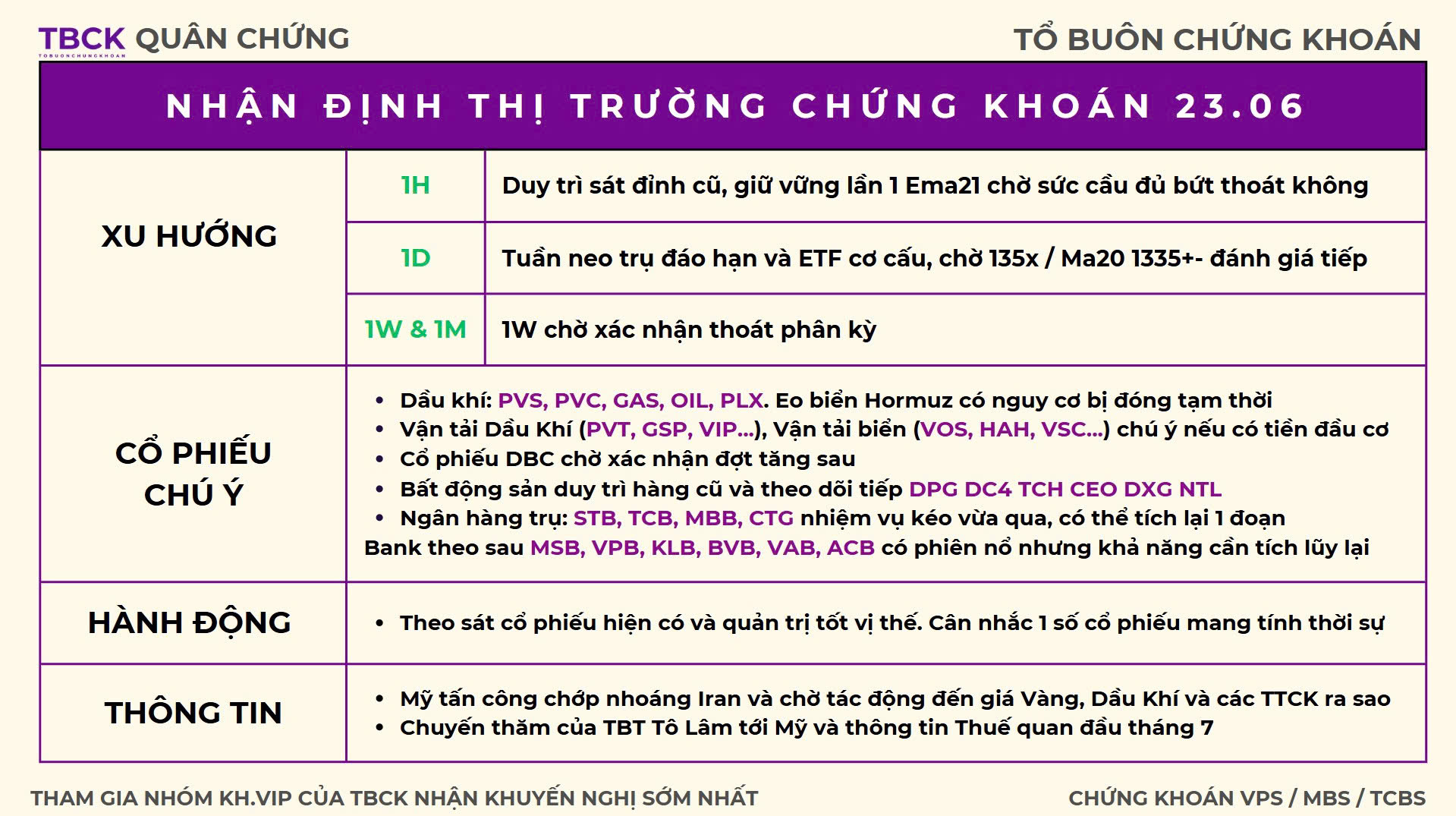 Tổ Buôn Chứng Khoán 23/6/2025: Vnindex có lo tác động từ Mỹ - Iran?