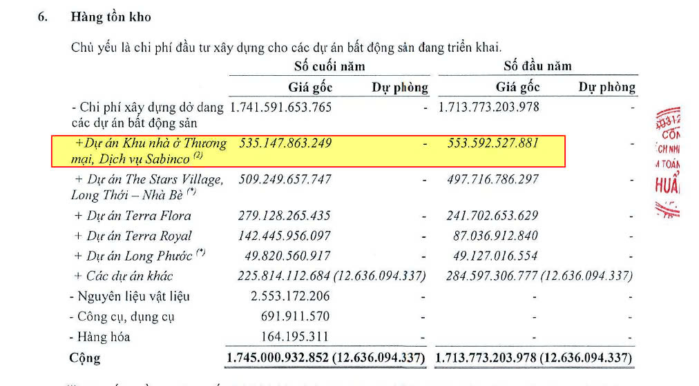 Tồn kho giảm thì liên quan tới hoạt động bán hàng, hoặc cũng có thể do xác định lại giá trị 1 mục nào đó, hoặc nếu diện tích khu kênh 2ha cắt ra theo thông tin gần đây.
