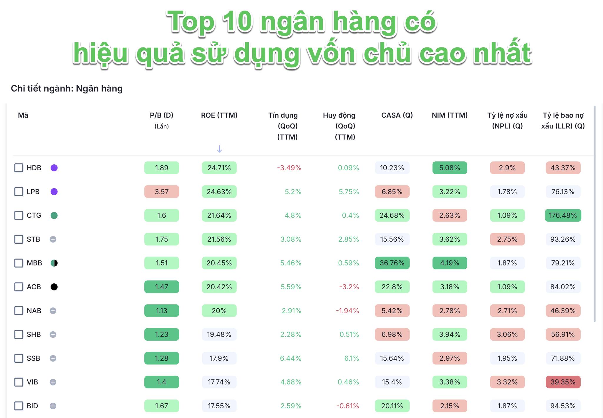 Top 10 ngân hàng có hiệu quả sử dụng vốn chủ cao nhất — ranking theo ROE cao