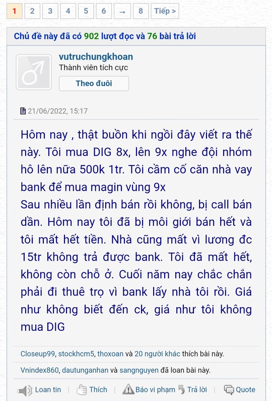Mình chốt nhé . Bạn còn chơi ck từ tháng 12/2021, mình thì mới chơi từ tháng 5/2022 thôi. Mà giờ này MUA hay BÁN bạn cũng không tự quyết, toàn lên xem ý kiến người khác thì tốt nhất là bạn nên bán hết lấy tiền kinh doanh việc khác đi, ck không hợp với bạn đâu .