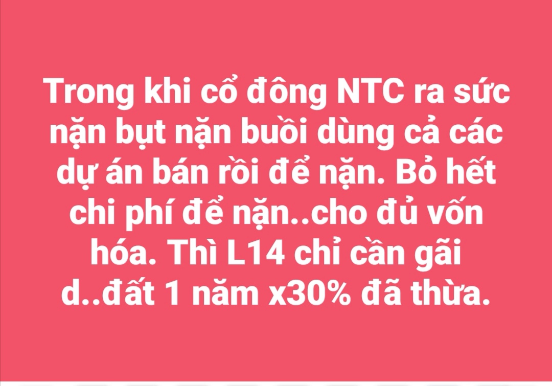 Điều quan trọng nhất của L14 là quỹ đất 1 dự án nó bóp chết 5 cái dự án NTU3 của mày trong khi giá nó vốn hóa đang 1/3