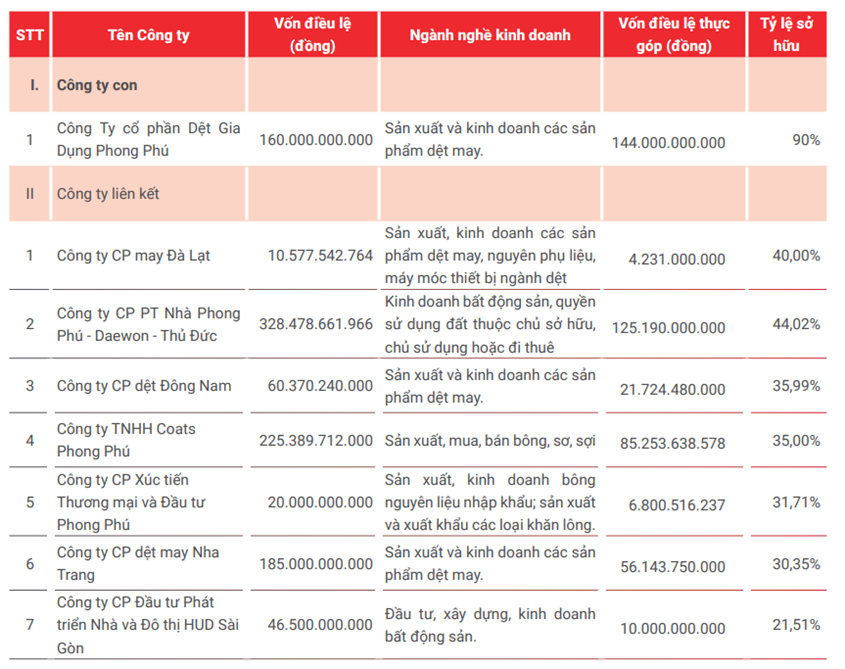 PPH sở hữu nhiều công ty con và công ty liên kết trong ngành dệt may >> mỗi năm mang lại doanh thu và lợi nhuận lớn cho cty mẹ là PPH, vời triển vọng ngành dệt may đang hồi phục và phát triển nhanh sau dịch thì lợi nhuận từ cty con cty liên kết được kỳ vọng rất khá quan trong năm 2022 này.