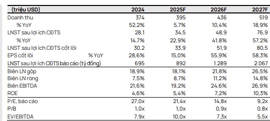 • Chúng tôi dự báo tốc độ tăng trưởng kép (CAGR) của LNST sau lợi ích CĐTS giai đoạn 2026– 2028 sẽ ghi nhận ở mức 45%, nhờ được thúc đẩy bởi mức tăng 2–5% mỗi năm của giá thuê ngày, đóng góp từ PVD IX (từ tháng 4/2026) và PVD X (từ năm 2028), sự phục hồi của mảng dịch vụ giếng khoan, và lợi nhuận từ các công ty liên doanh.