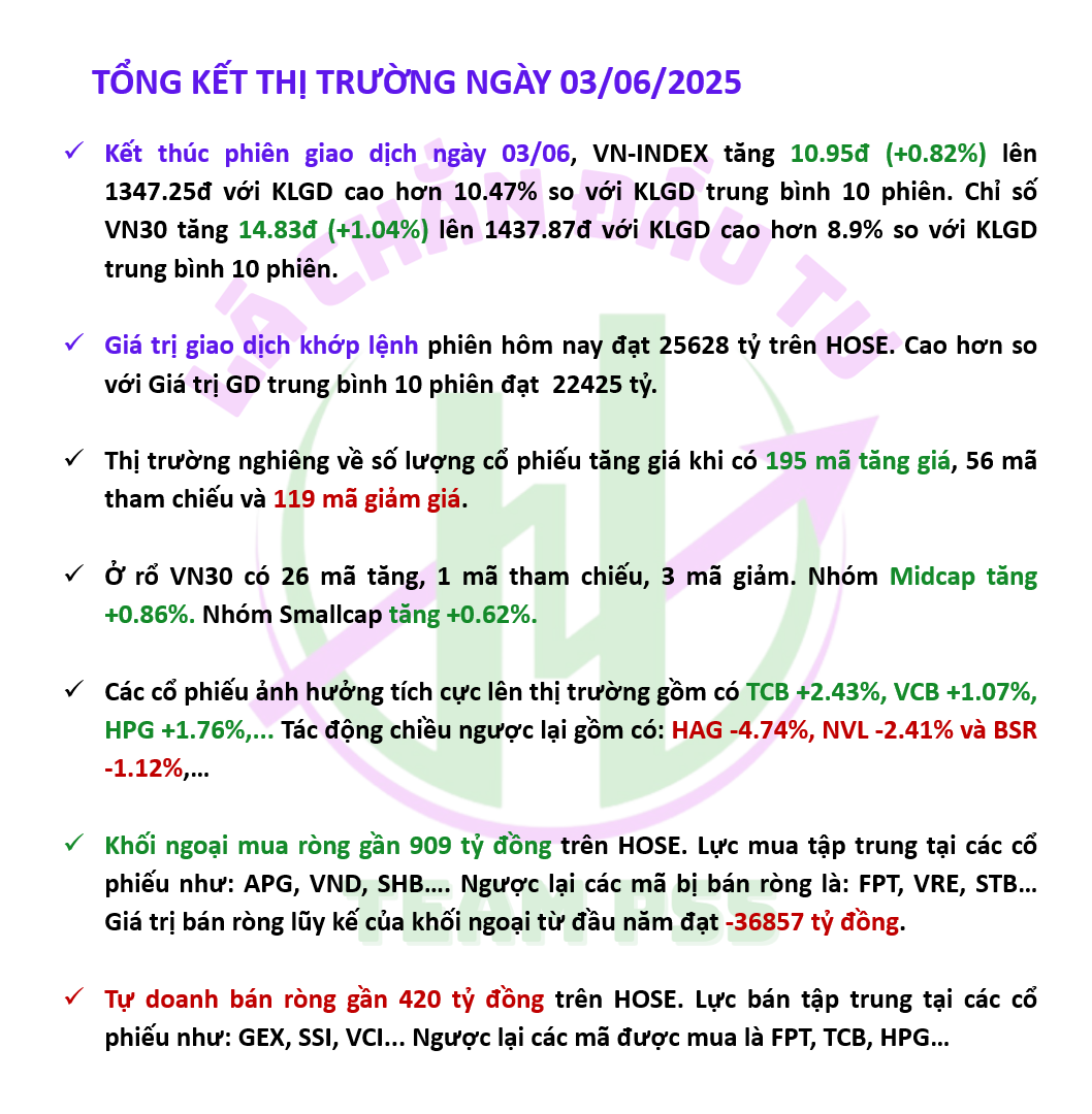 BẢN TIN TỔNG KẾT THỊ TRƯỜNG NGÀY 03/06/2025.