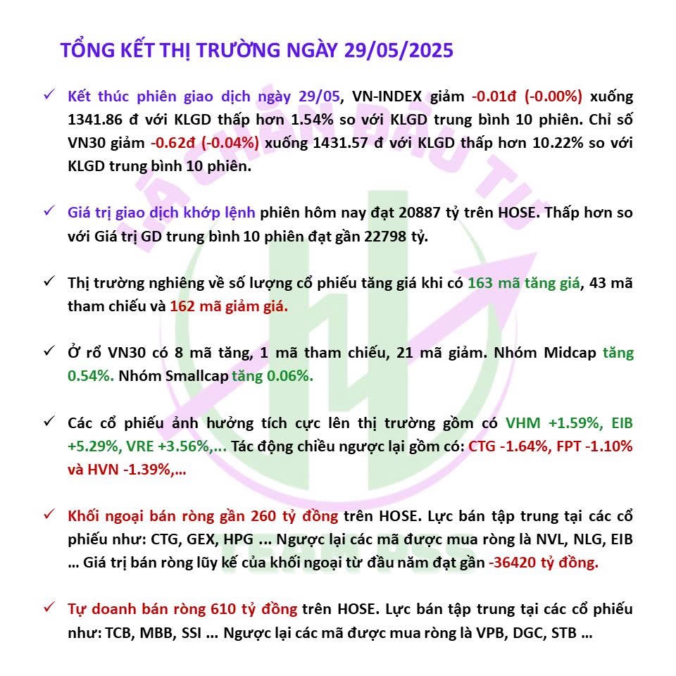 BẢN TIN TỔNG KẾT THỊ TRƯỜNG NGÀY 29/05/2025.
