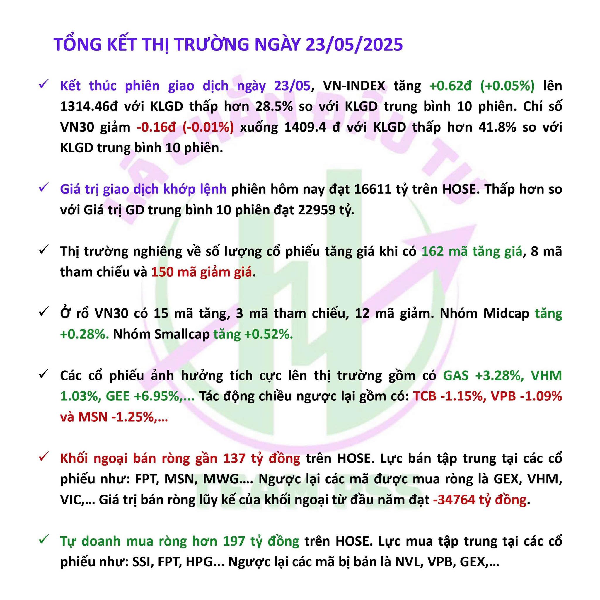BẢN TIN TỔNG KẾT THỊ TRƯỜNG NGÀY 23/05/2025.