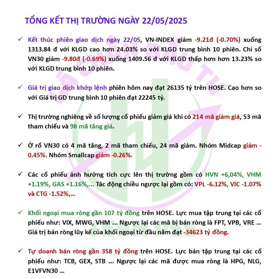 BẢN TIN TỔNG KẾT THỊ TRƯỜNG NGÀY 22/05/2025.