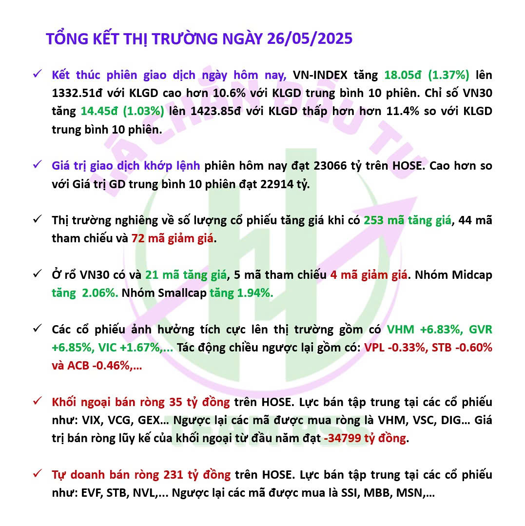 BẢN TIN TỔNG KẾT THỊ TRƯỜNG NGÀY 26/05/2025.