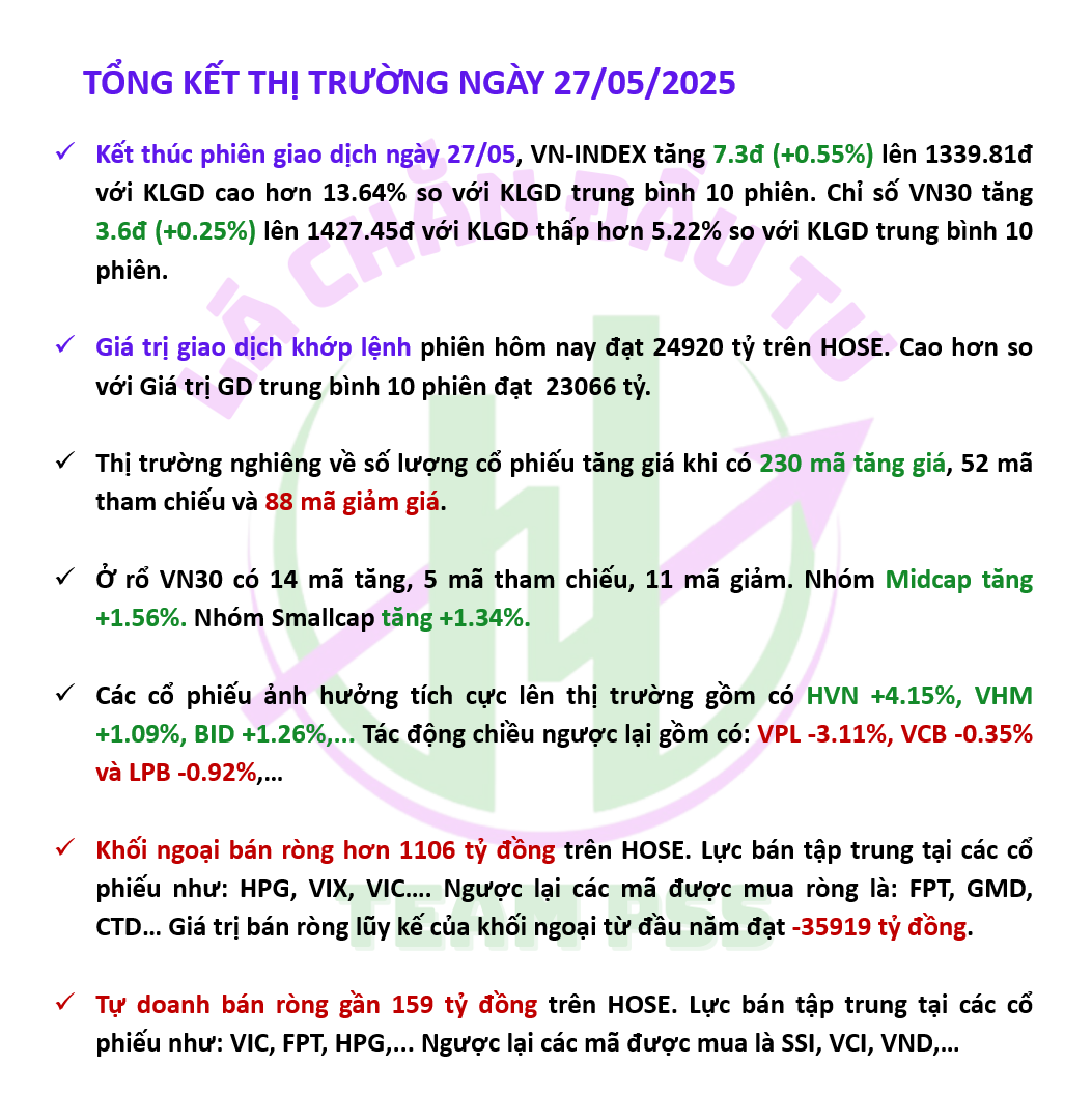 BẢN TIN TỔNG KẾT THỊ TRƯỜNG NGÀY 27/05/2025.