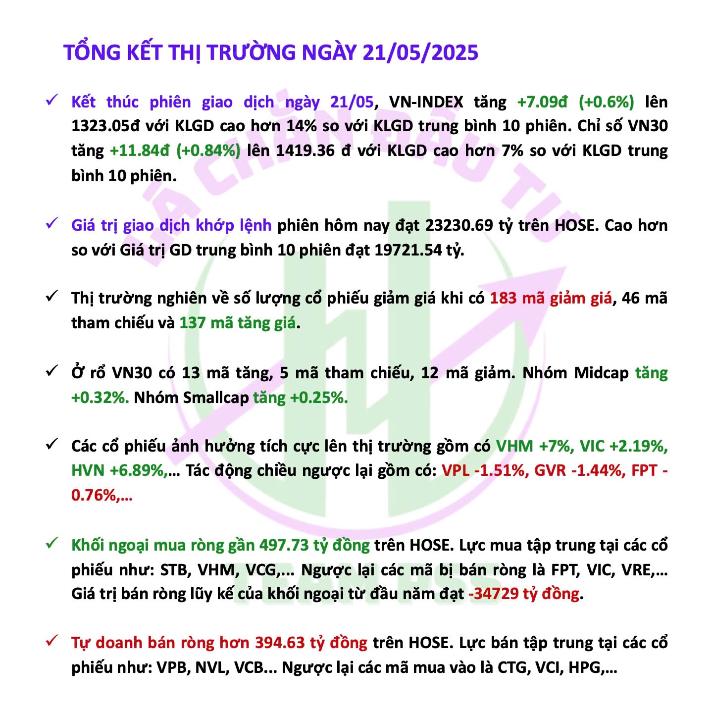 BẢN TIN TỔNG KẾT THỊ TRƯỜNG NGÀY 21/05/2025.