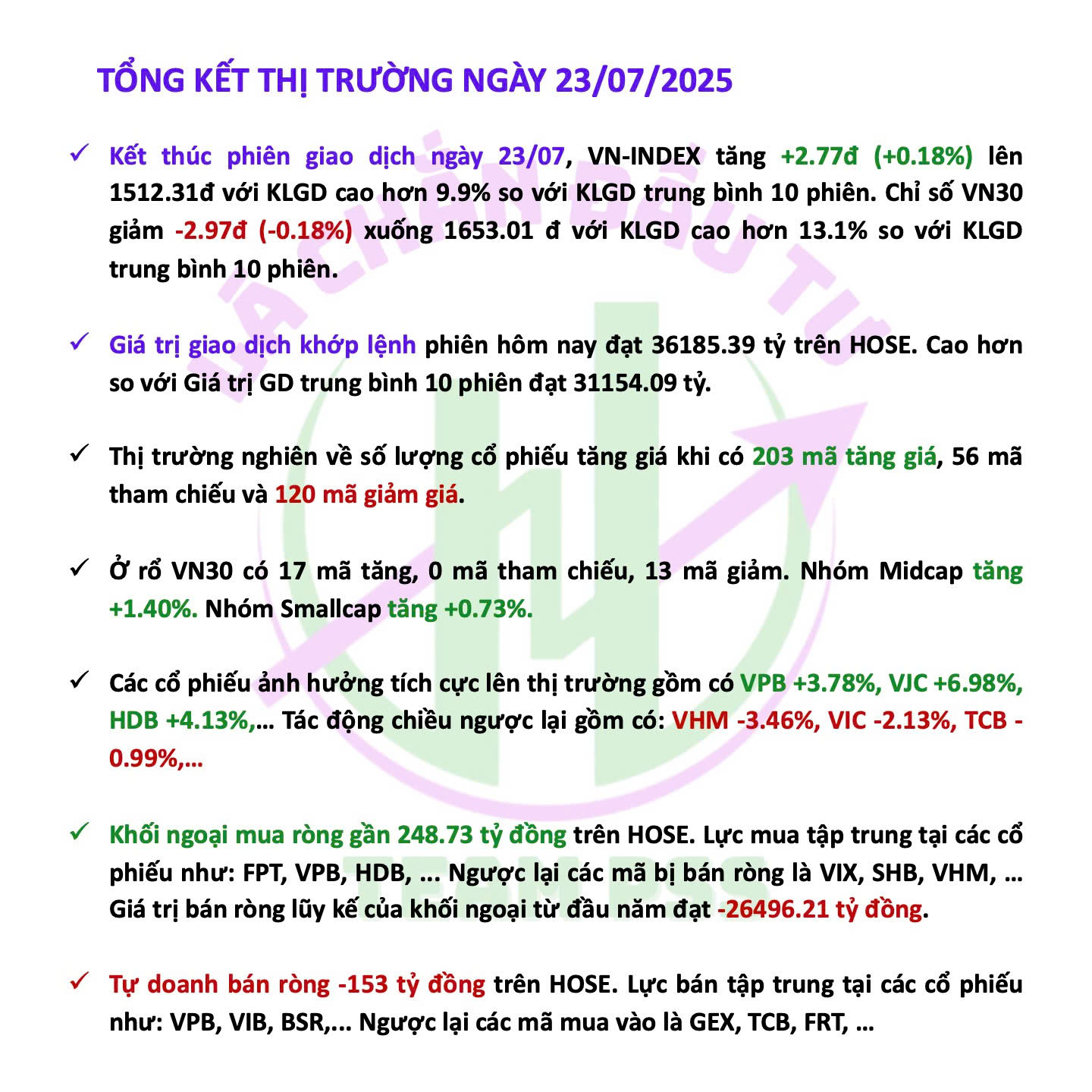 BẢN TIN TỔNG KẾT THỊ TRƯỜNG NGÀY 23/07/2025.