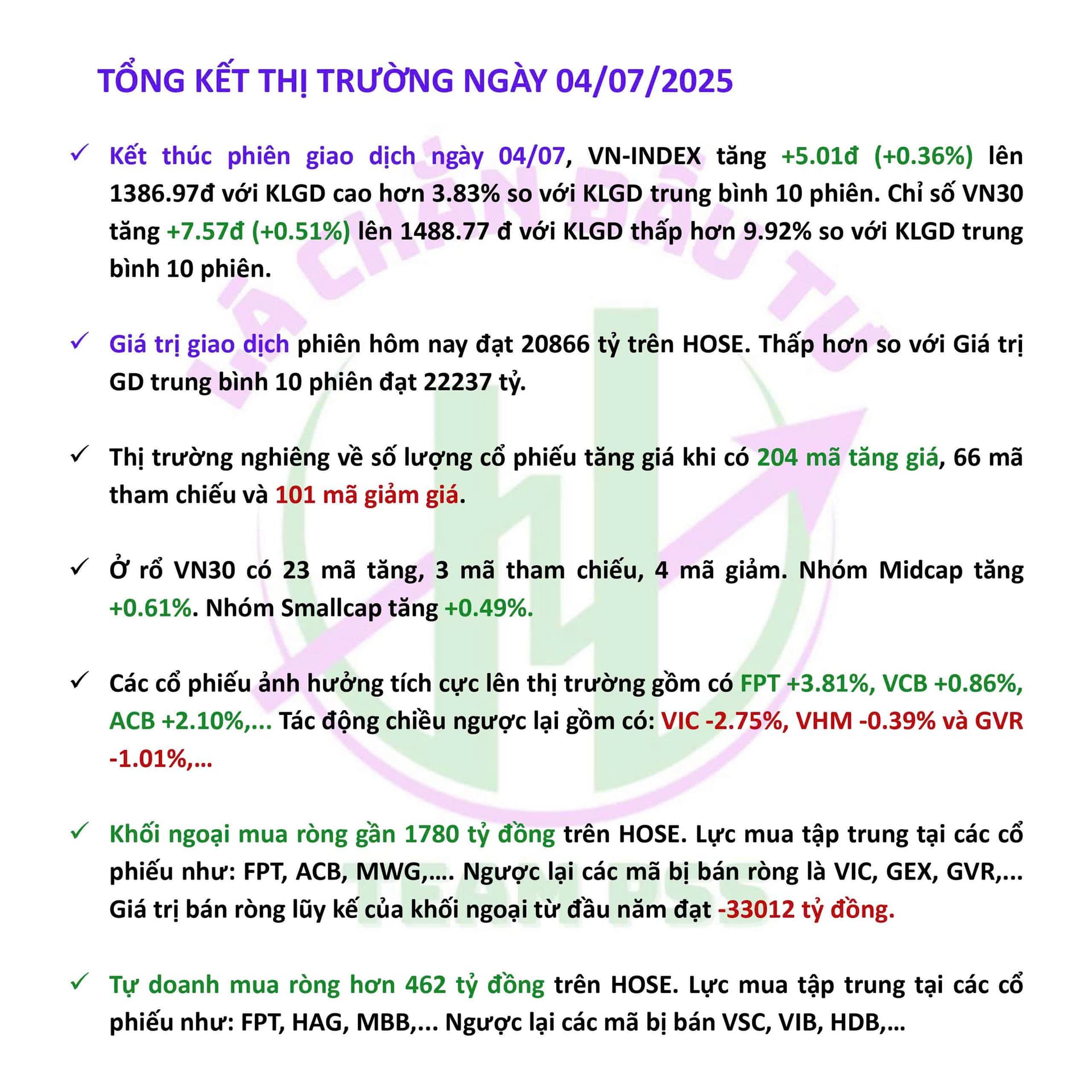 BẢN TIN TỔNG KẾT THỊ TRƯỜNG NGÀY 04/07/2025.