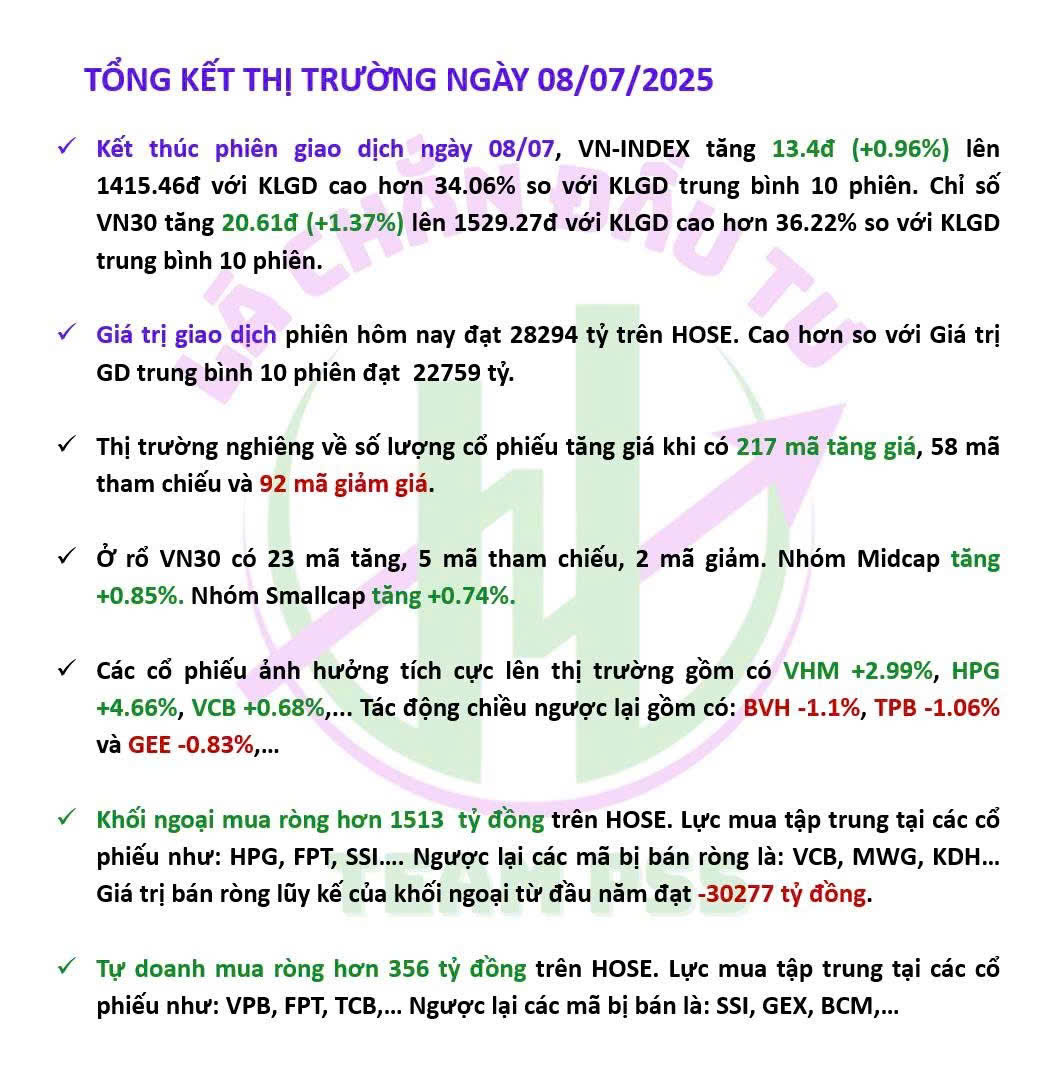 BẢN TIN TỔNG KẾT THỊ TRƯỜNG NGÀY 08/07/2025.