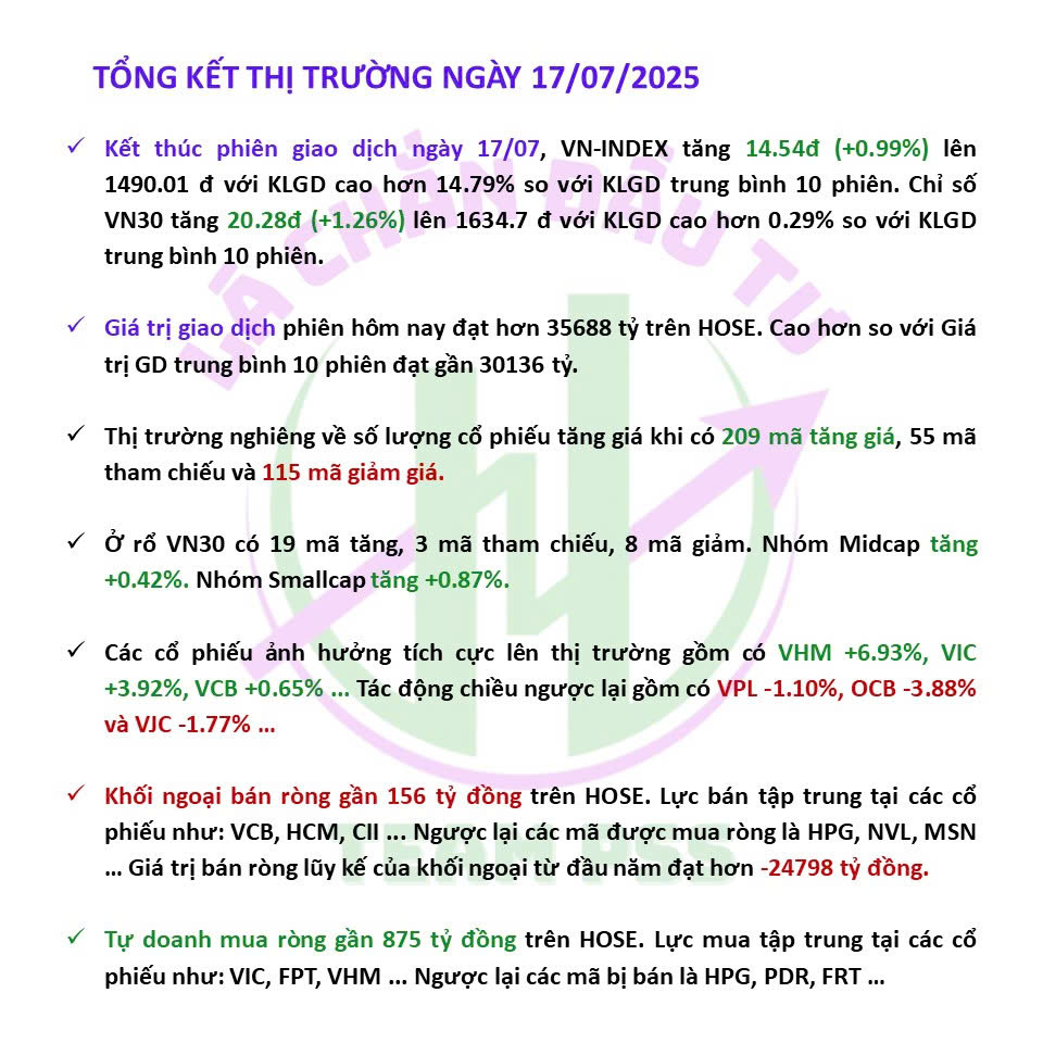 BẢN TIN TỔNG KẾT THỊ TRƯỜNG NGÀY 17/07/2025.