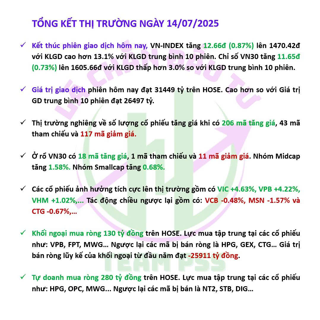 BẢN TIN TỔNG KẾT THỊ TRƯỜNG NGÀY 14/07/2025.