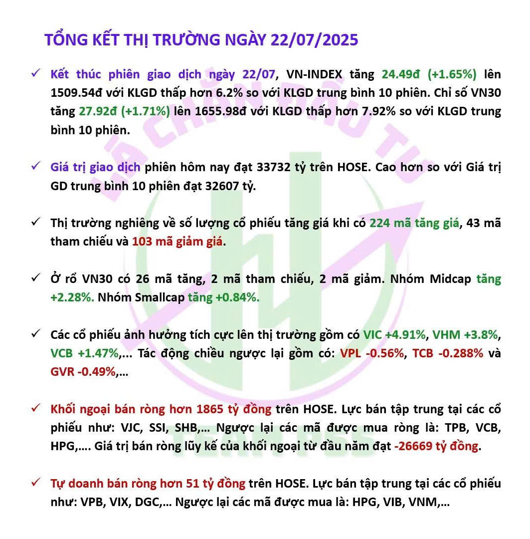BẢN TIN TỔNG KẾT THỊ TRƯỜNG NGÀY 22/07/2025.