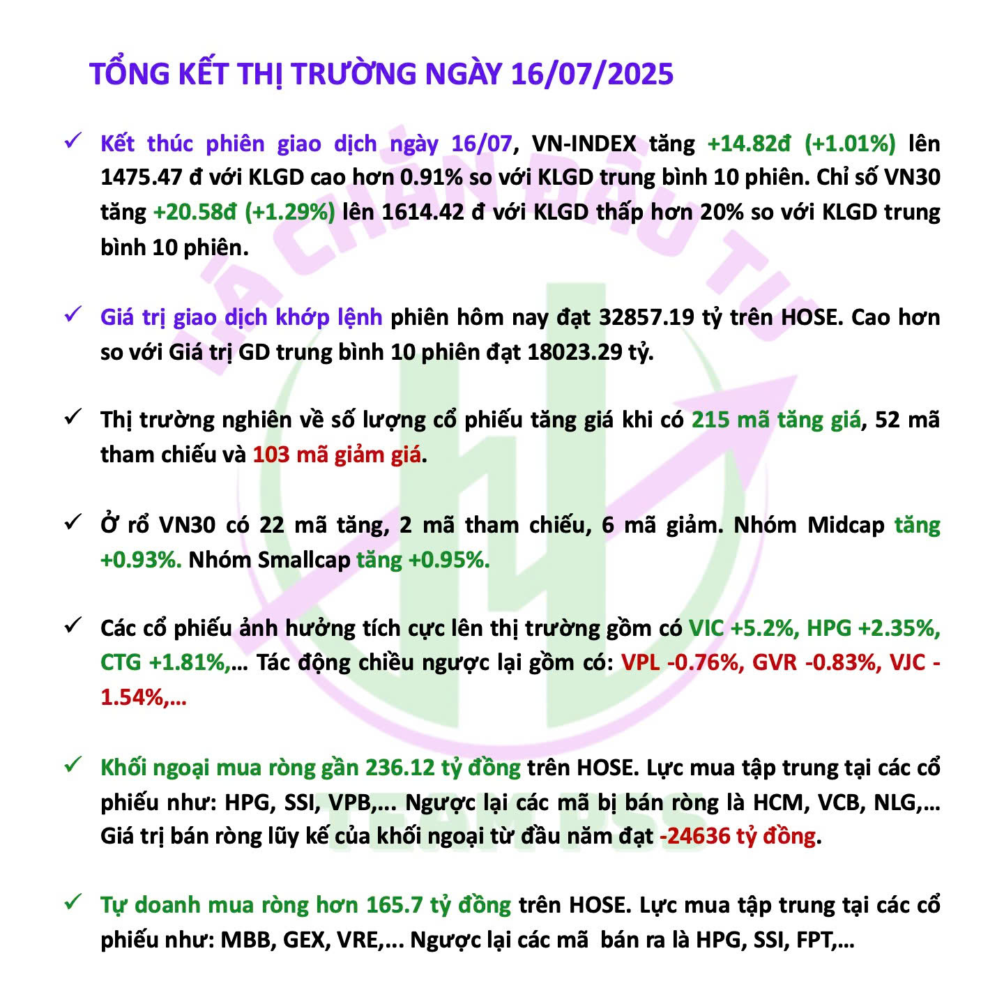 BẢN TIN TỔNG KẾT THỊ TRƯỜNG NGÀY 16/07/2025.