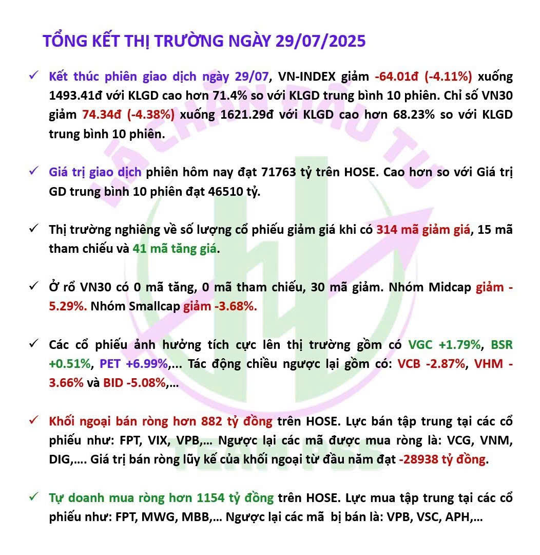 BẢN TIN TỔNG KẾT THỊ TRƯỜNG NGÀY 29/07/2025.