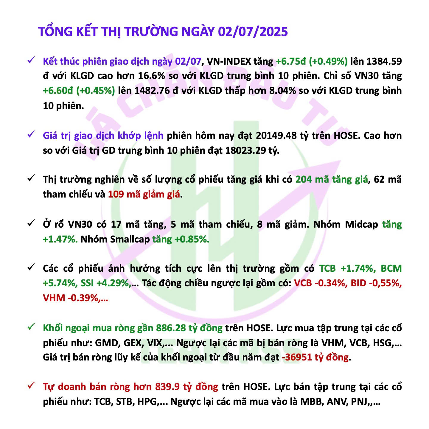 BẢN TIN TỔNG KẾT THỊ TRƯỜNG NGÀY 02/07/2025.