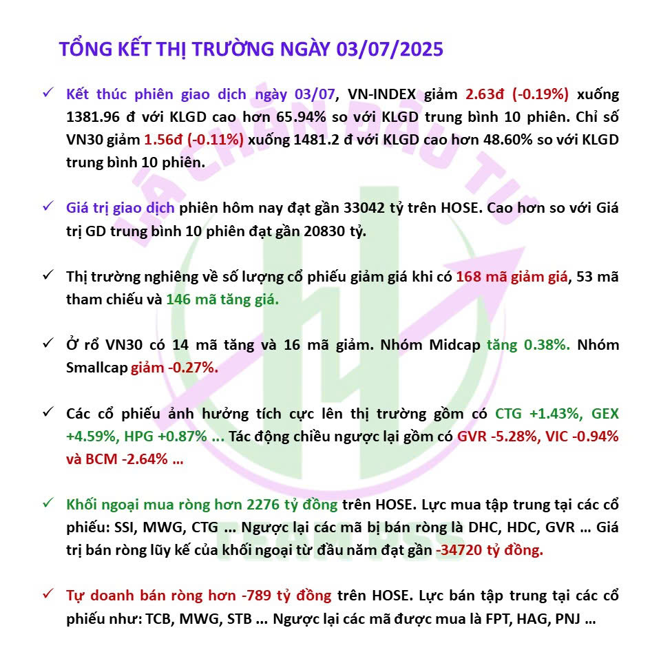 BẢN TIN TỔNG KẾT THỊ TRƯỜNG NGÀY 03/07/2025.