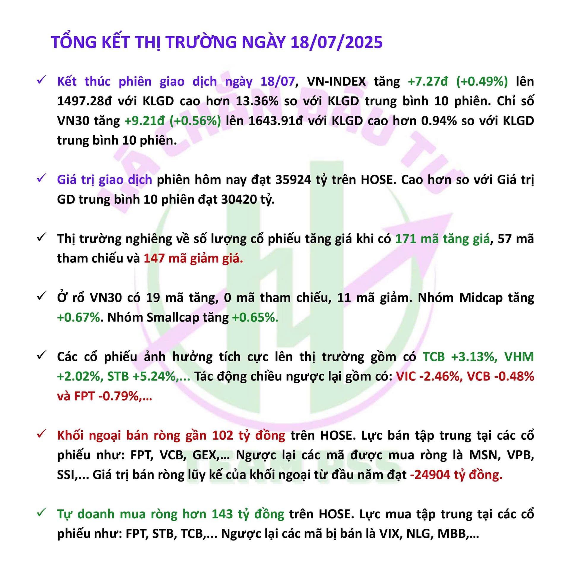 BẢN TIN TỔNG KẾT THỊ TRƯỜNG NGÀY 18/07/2025.