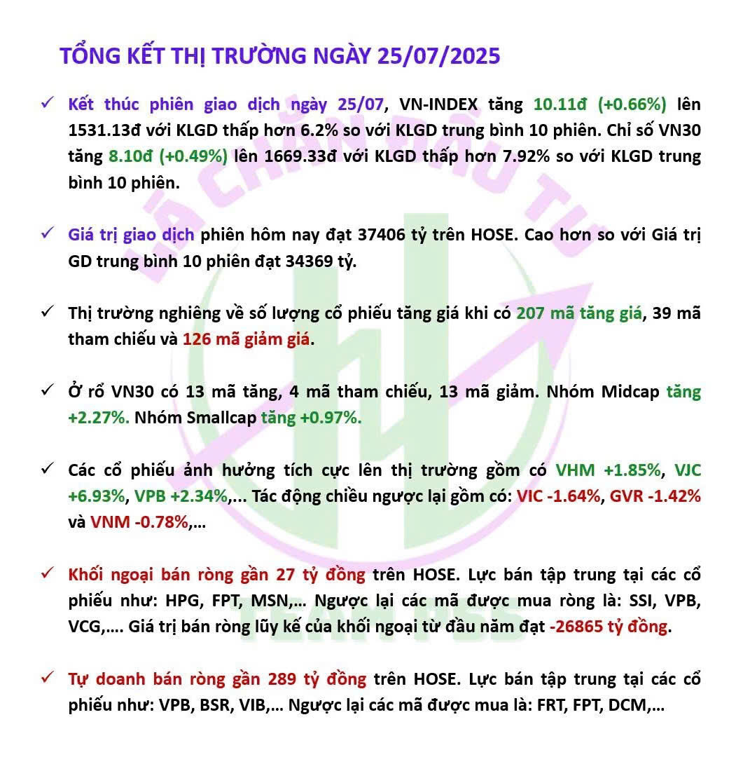 BẢN TIN TỔNG KẾT THỊ TRƯỜNG NGÀY 25/07/2025.