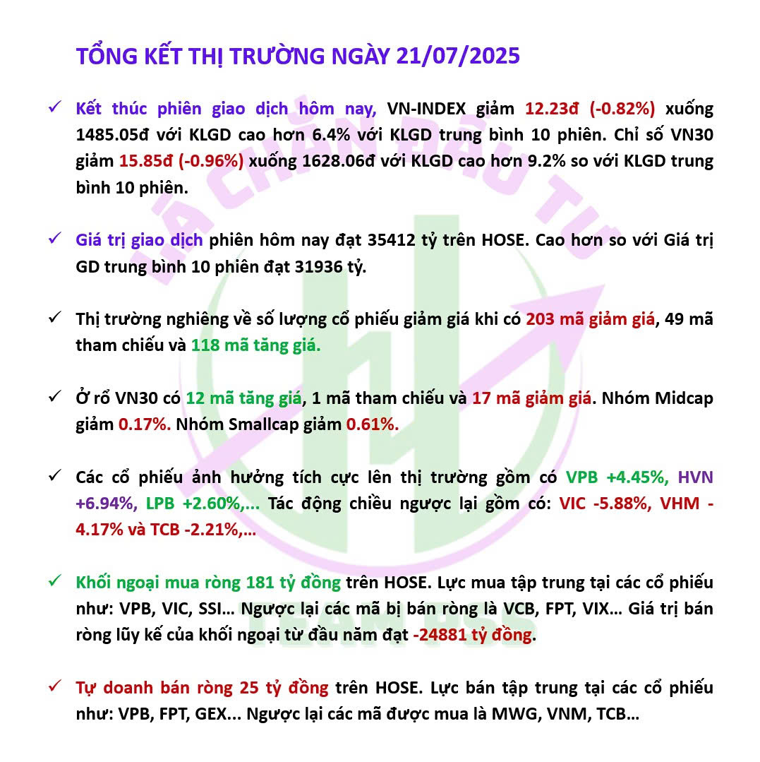 BẢN TIN TỔNG KẾT THỊ TRƯỜNG NGÀY 21/07/2025.
