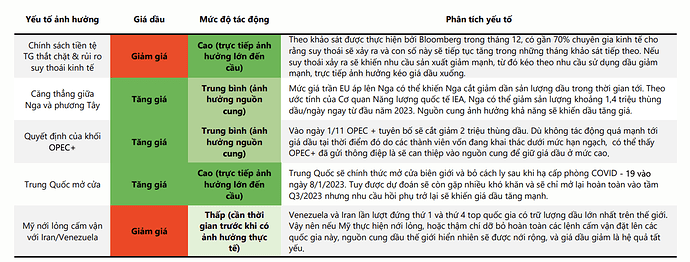 - Giá dầu dù vẫn khó xác định do nhiều yếu tố tác động, nhưng khả năng cao sẽ chỉ tiếp tục đi sideway hoặc hạ nhiệt do các yếu tố đang lo ngại nhất là suy thoái kinh tế.