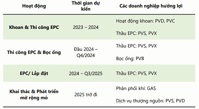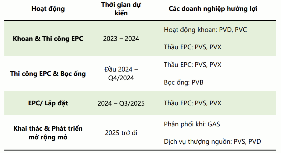 b) Chuỗi dự án Lô B – Ô Môn được kỳ vọng sẽ được triển khai trong năm nay. Với tổng mức đầu tư gần 10 tỷ USD, dự án này sẽ tạo nên khối lượng công việc cực lớn cho các doanh nghiệp ở phân khúc thượng nguồn. Không chỉ vậy, nhờ trữ lượng dầu khí lớn (tới 3,7 nghìn tỷ bộ khối khí), nên việc khai thác Lô B – Ô Môn cũng tạo động lực tăng trưởng bên vững cho toàn ngành dầu khí. Tuy vậy, do còn nhiều vướng mắc trong các khâu pháp lý nên dự án đã nhiều lần bị trì hoãn và vẫn chưa có dấu hiệu rõ ràng về việc triển khai đầu tư. Theo kết luận chính thức của Tập đoàn dầu khí (PVN), quyết định đầu tư cuối cùng của dự án này sẽ được dời lại vào tháng 6/2023 (trước đó là tháng 7/2022) và thời điểm phát triển mỏ khí Lô B có dòng khí đầu tiên chậm nhất vào quý IV/2026. Kỳ vọng dự án sẽ được phê duyệt vào Quý I/2023 khi dự án này nhận được rất nhiều quan tâm và luôn được đốc thúc, chỉ đạo quyết liệt bởi Chính phủ.