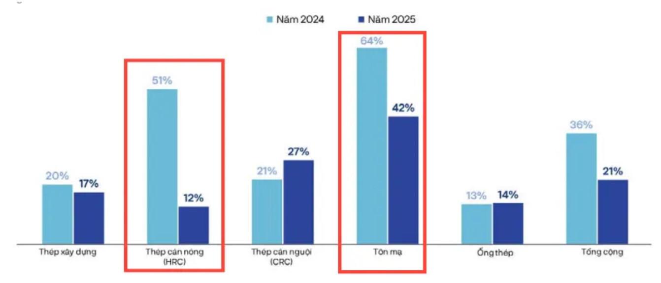 Chưa kể rằng mặt hàng Mỹ áp thuế thường là Thép Core - 1 dòng sản phẩm được làm từ thép cán nguội CRC. Mà các doanh nghiệp niêm yết của Việt Nam thì lại ít sản xuất sản phẩm này. Do đó, thuế của mặt hàng này sẽ không tác động đến doanh nghiệp Việt Nam nhiều.