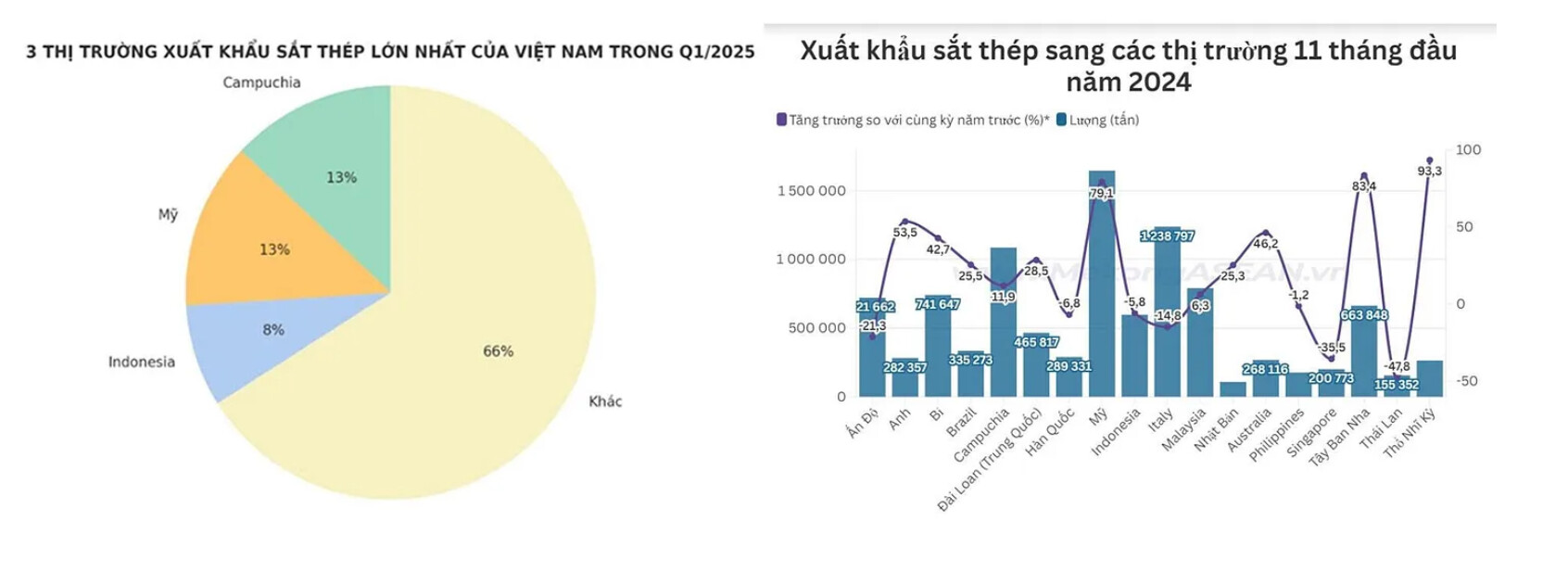 - Tính đến Q1/2025, thị trường Mỹ chiếm tỷ trọng 13% (sau Asean và EU), tổng sản lượng xuất khẩu ~ 1.7 triệu tấn (phần lớn là thép HRC và tôn mạ). Việc đánh thuế như vậy, sẽ làm giảm một phần lợi nhuận của các doanh nghiệp. Tuy nhiên cần phải xem xét tỷ trọng các doanh nghiệp xuất khẩu Thép vào Mỹ chiếm bao nhiêu.