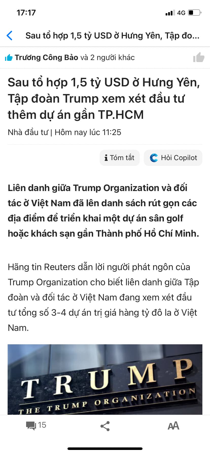 3.1ha lõi sg đáng giá ntn so với vốn hoá 1500tỷ.