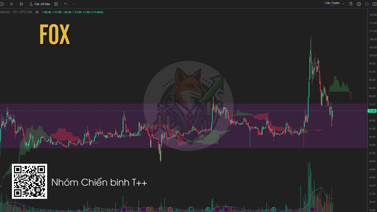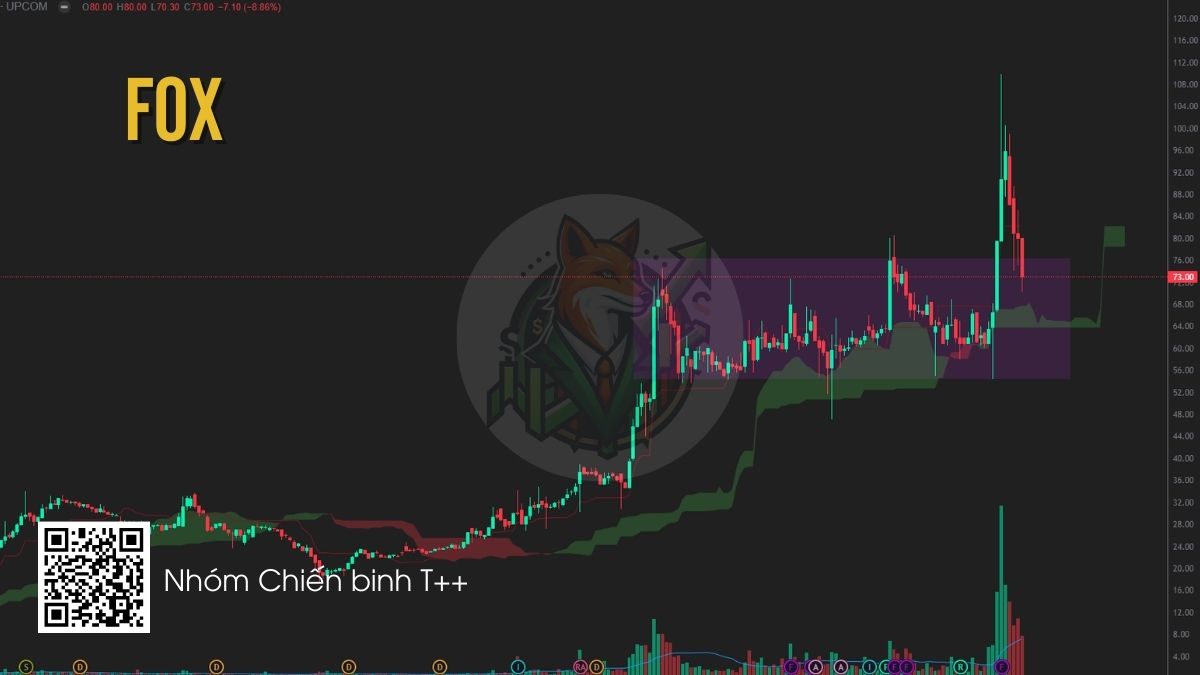 FOX sau khi breakout khỏi vùng tích lũy 60–70 đã có nhịp tăng mạnh và hiện đang quay lại kiểm định vùng hỗ trợ 70–75, chính là vùng breakout trước đó. Đây là vùng hỗ trợ quan trọng trong xu hướng tăng trung hạn. Nhà đầu tư có thể theo dõi phản ứng giá tại khu vực này và cân nhắc giải ngân khi xuất hiện tín hiệu nến đảo chiều rõ ràng.