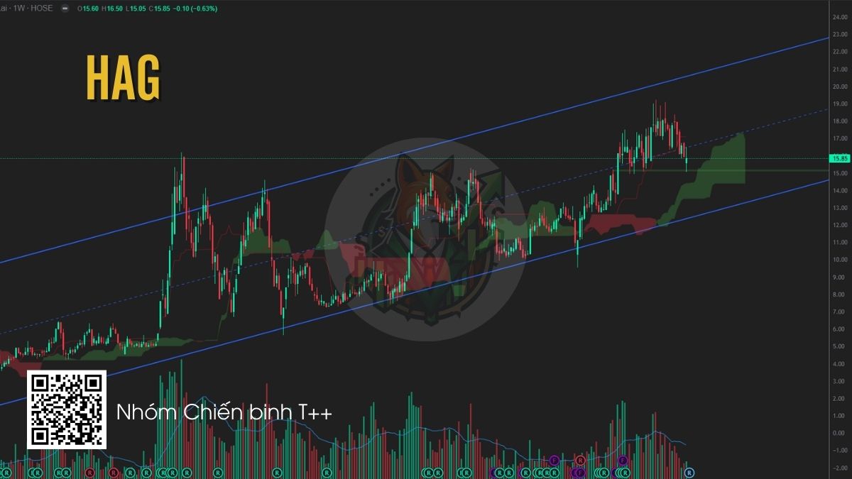 HAG đang kiểm định lại vùng hỗ trợ quan trọng 15–15.5 sau khi bứt phá khỏi nền tích lũy trước đó. Nến rút chân kèm khối lượng cải thiện cho thấy lực cầu đang tham gia tại vùng giá này. Bên cạnh đó, thông tin Chủ tịch Đoàn Nguyên Đức đăng ký mua 5 triệu cổ phiếu cũng góp phần củng cố niềm tin của nhà đầu tư vào triển vọng doanh nghiệp. Nếu giá tiếp tục giữ vững vùng 15–15.5, nhà đầu tư có thể cân nhắc giải ngân quanh khu vực này, với kỳ vọng giá quay lại vùng 17–18 trong các nhịp tăng tiếp theo.