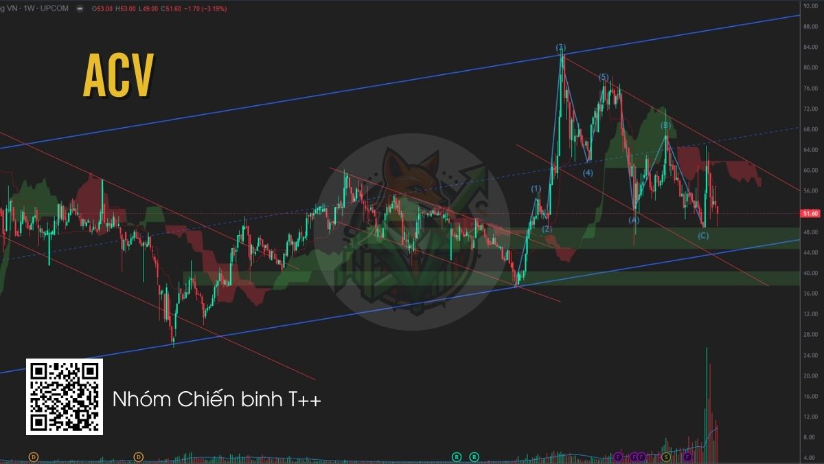 ACV đang điều chỉnh về vùng hỗ trợ mạnh 48–50 sau nhịp giảm từ vùng đỉnh trước đó. Đây là khu vực hỗ trợ quan trọng khi trùng với đáy cũ và biên dưới kênh giá. Nhà đầu tư có thể theo dõi phản ứng giá tại vùng này và cân nhắc giải ngân khi xuất hiện tín hiệu nến đảo chiều xác nhận. Về dài hạn, ACV vẫn được hỗ trợ bởi câu chuyện sân bay Long Thành và triển vọng tăng trưởng của ngành hàng không.