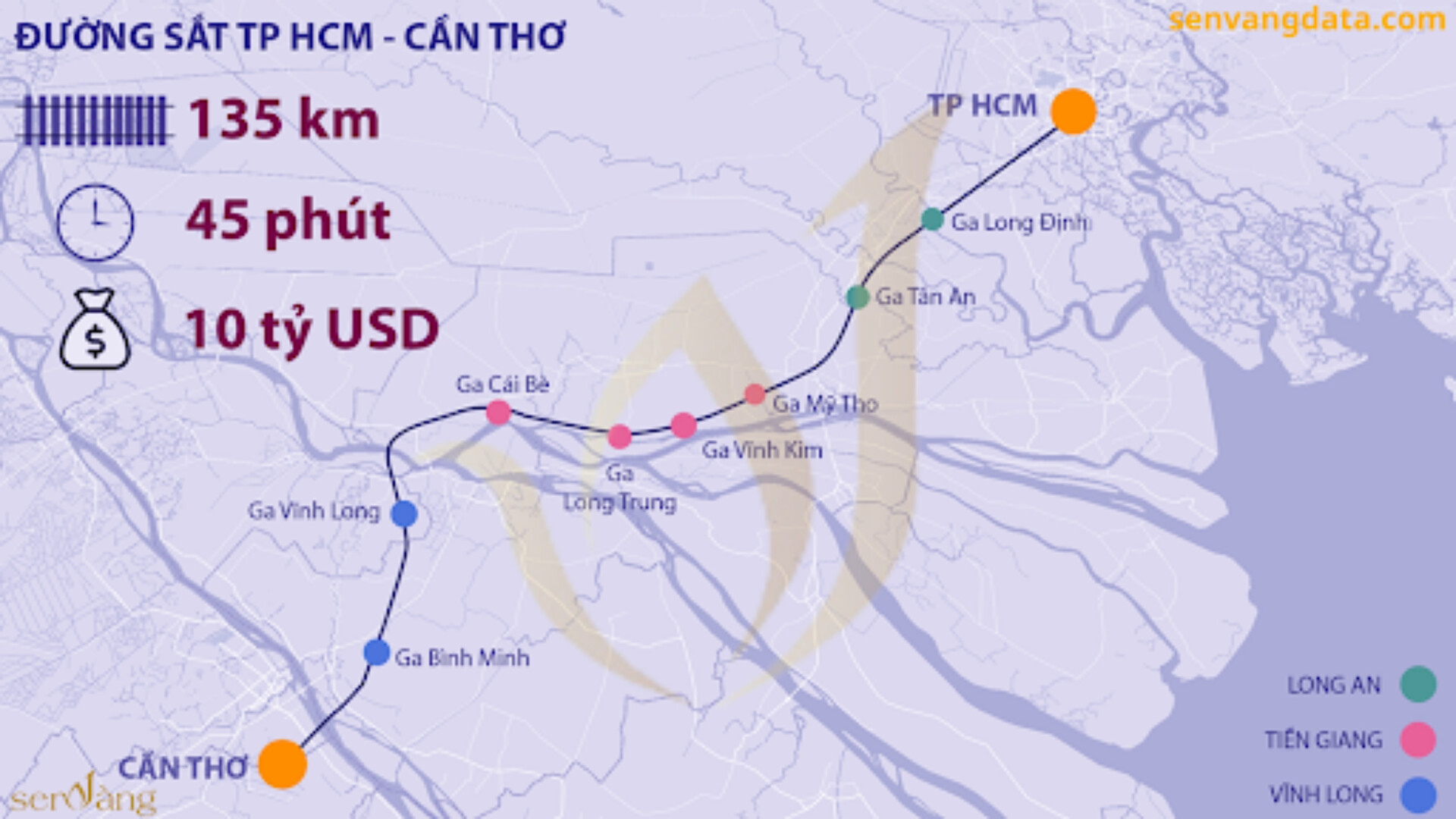 Dự án đường sắt tốc độ cao thành phố Hồ Chí Minh – Cần Thơ. Nguồn: Sen Vàng tổng hợp