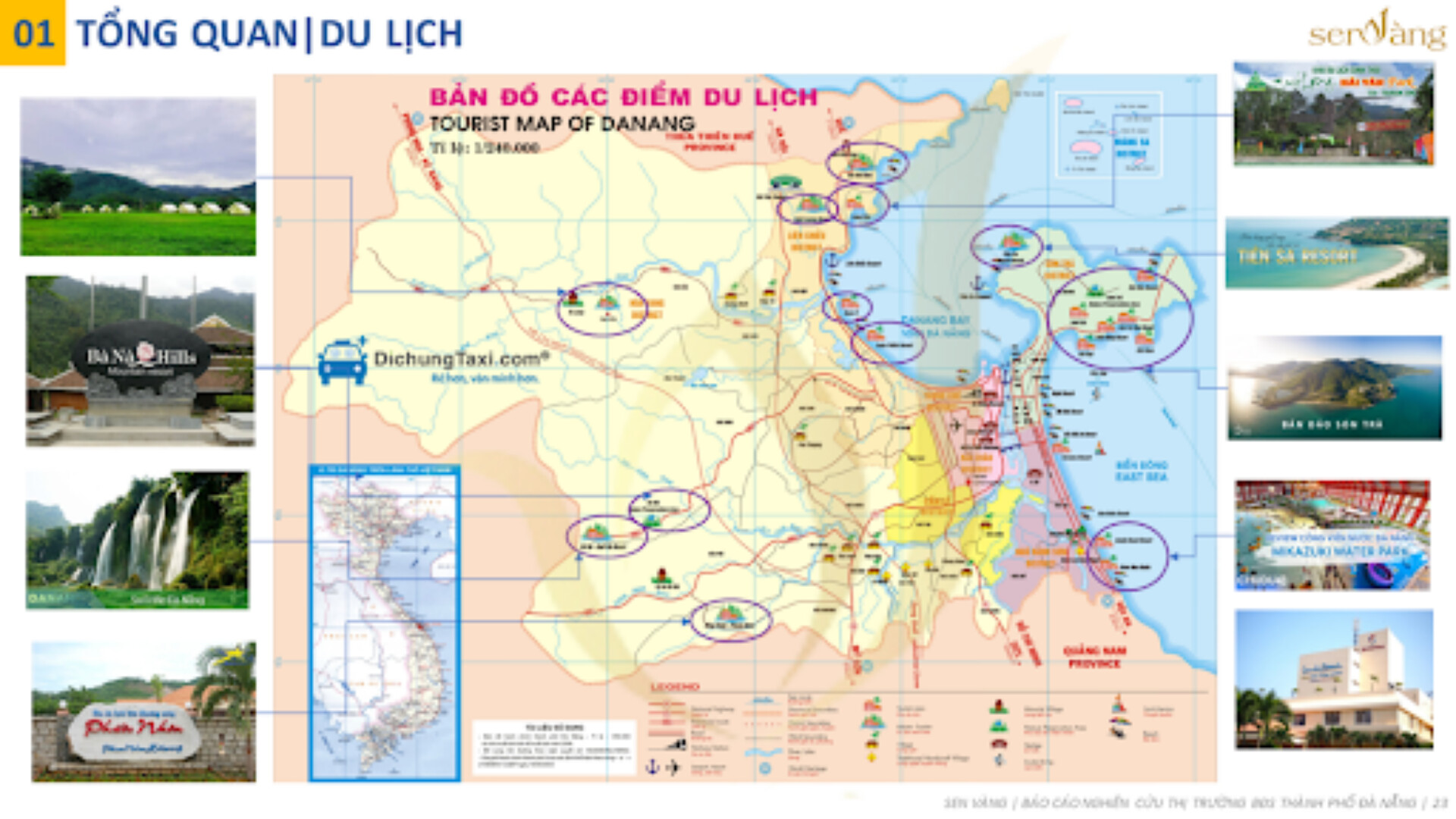 - Du lịch: Đà Nẵng là thành phố du lịch nổi tiếng nhất cả nước, với nhiều danh lam thắng cảnh nổi tiếng như: Bãi biển Mỹ Khê, Ngũ Hành Sơn, Bà Nà Hills,… thu hút nhiều du khách trong và ngoài nước đến tham quan và nghỉ dưỡng.