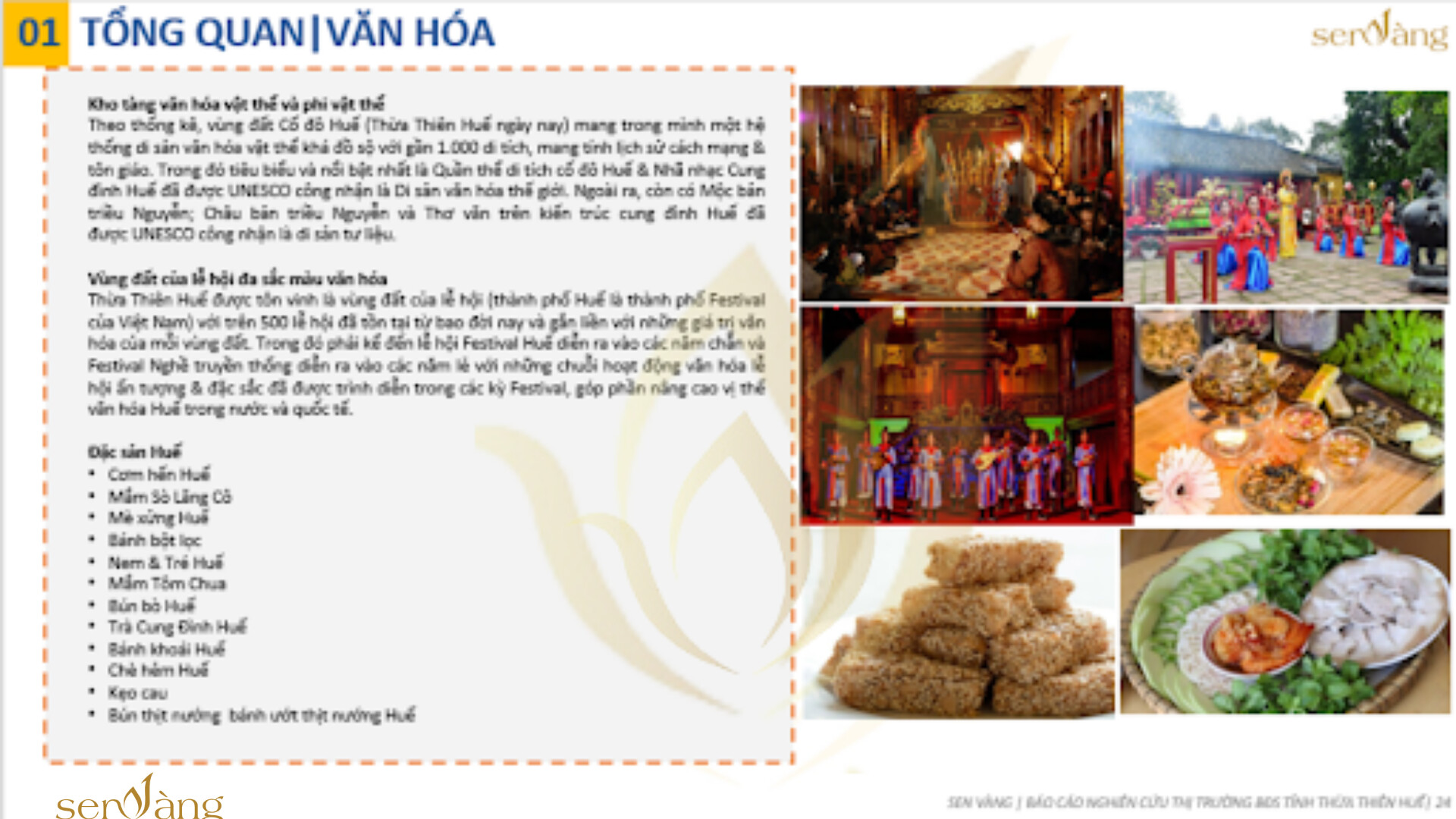 - Văn hóa: Thừa Thiên Huế là trung tâm văn hóa của cả nước. Thành phố có nhiều lễ hội truyền thống, di sản văn hóa phi vật thể được UNESCO công nhận.