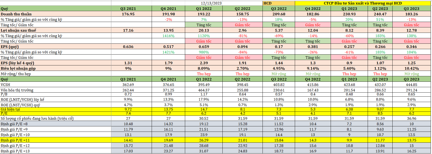 HCD đang quá rẻ so với giá thị trường trả. Nếu lấy P.E =8 thì giá bèo lắm bằng 10.