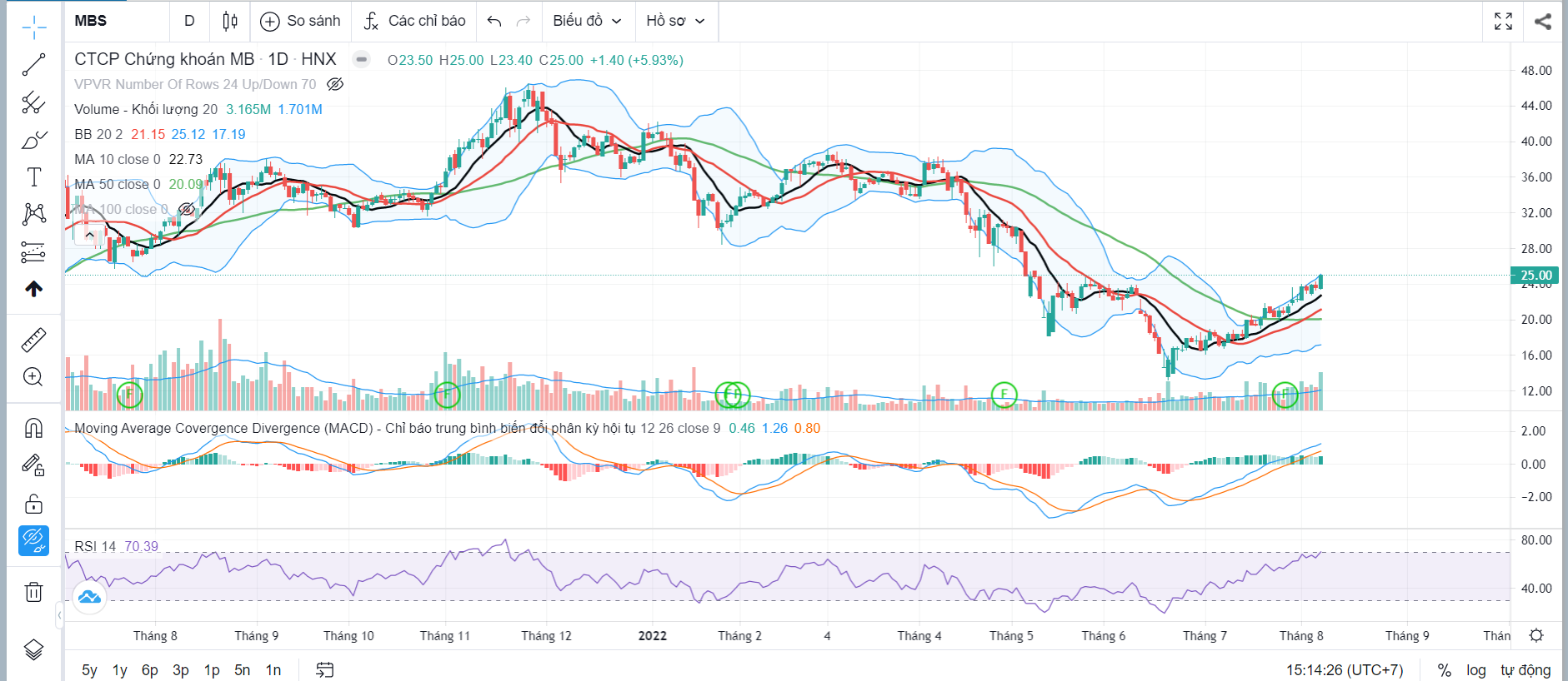 Em dự báo MBS sẽ tiếp tục duy trì nhịp phục hồi và có thể tiệm cận vùng giá 27-28. Đối với MBS, quý nhà đầu tư muốn tham gia lưu ý nên chờ những thời điểm rung lắc điều chỉnh. Vùng 23-23.5 sẽ là hỗ trợ mạnh cho giá cổ phiếu MBS.
