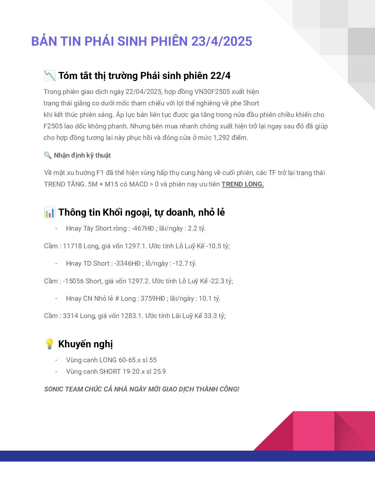 Phái Sinh ngày 23/4/2025