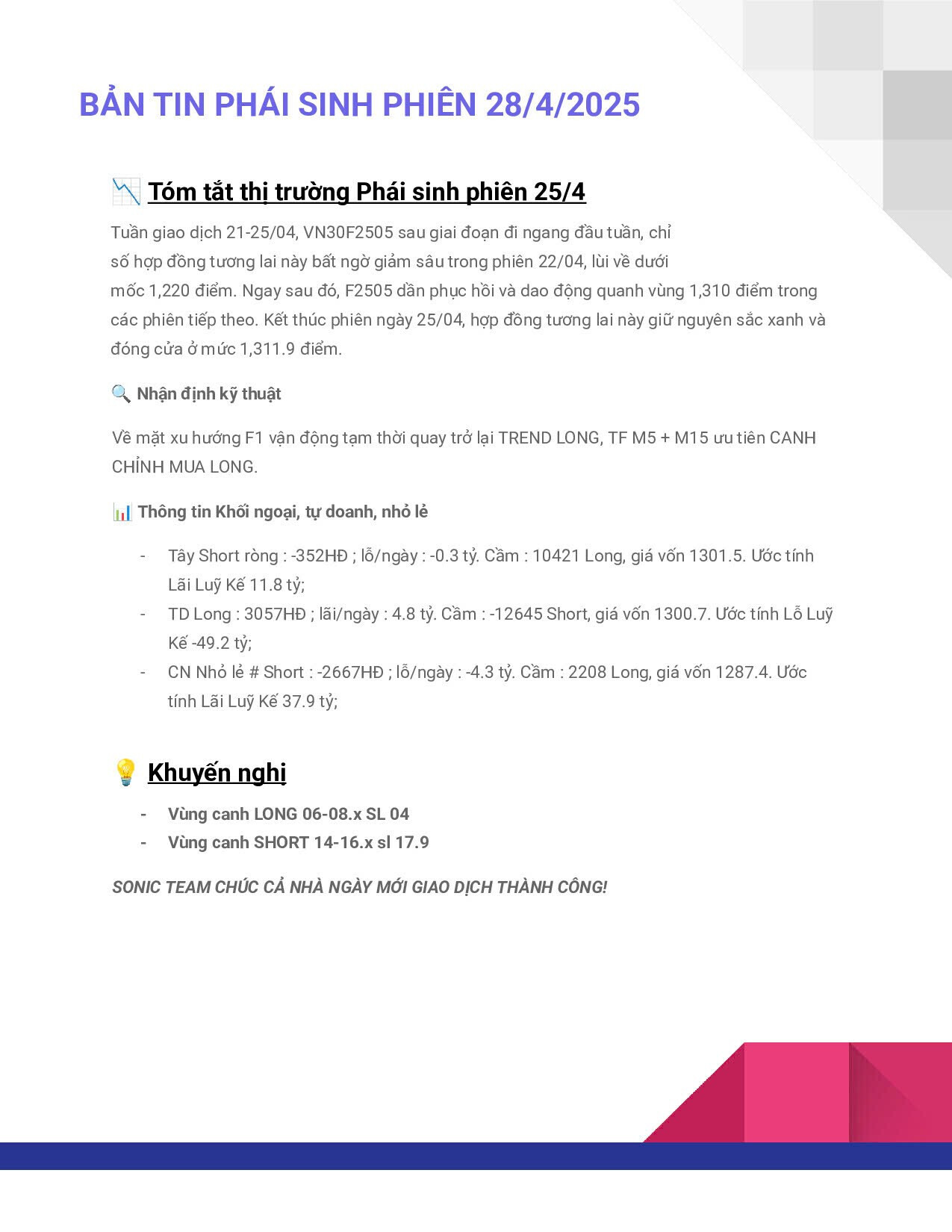 Phái Sinh ngày 28/4/2025